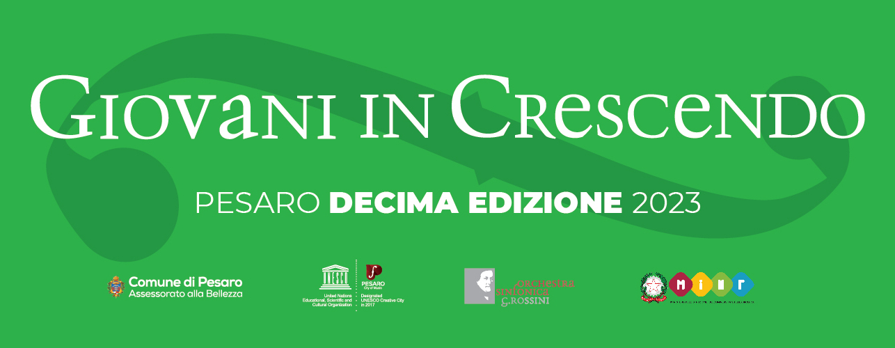 L'Orchestra Sinfonica G. Rossini, con il patrocinio del Ministero dell'istruzione, dell’Università e della Ricerca e del Comune di Pesaro, indice la XI edizione del Concorso Musicale “Giovani in Crescendo - 2024”. Il Concorso si svolgerà il 9, 10 e 11 Maggio a Pesaro, Città della Musica Unesco e Capitale Italiana della Cultura 2024.